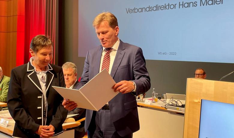 Zu Ehren von Dagmar Kierner war Hans Maier, Direktor des VdW Bayern (Verband bayerischer Wohnungsunternehmen e. V.) zu Gast. In seiner Laudatio bewunderte er den unermüdlichen Einsatz mit dem sie über 40 Jahre als Vorstand die Genossenschaft führte.