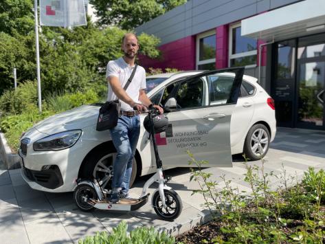 - Firmenfuhrpark mit E-Autos, Hybridmodellen und E-Scootern