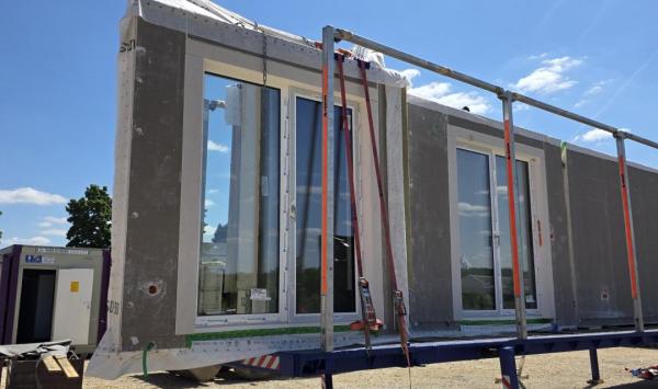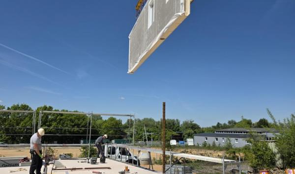 Holzhybrid ist schneller – viele Teile kommen vormontiert aus der Werkshalle.